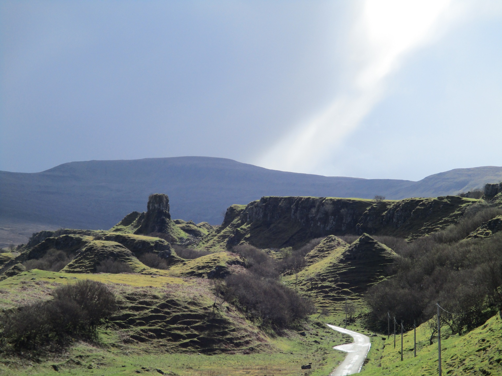 Další čtyřhodinová jízda byla úmorná. Zadky jsme měli v jednom ohni, o nohách ani nemluvím. Cesta z Fort William mi připomínala Krušné hory, ale zase jen na krátko. Jakmile jsme se blížili k ostrovu Skye, úchvatné výhledy na vrcholky hor, připomínající vyhaslé sopky. Jako bychom byli někde na konci světa, nebo jiné planetě. Prostě úžasné.