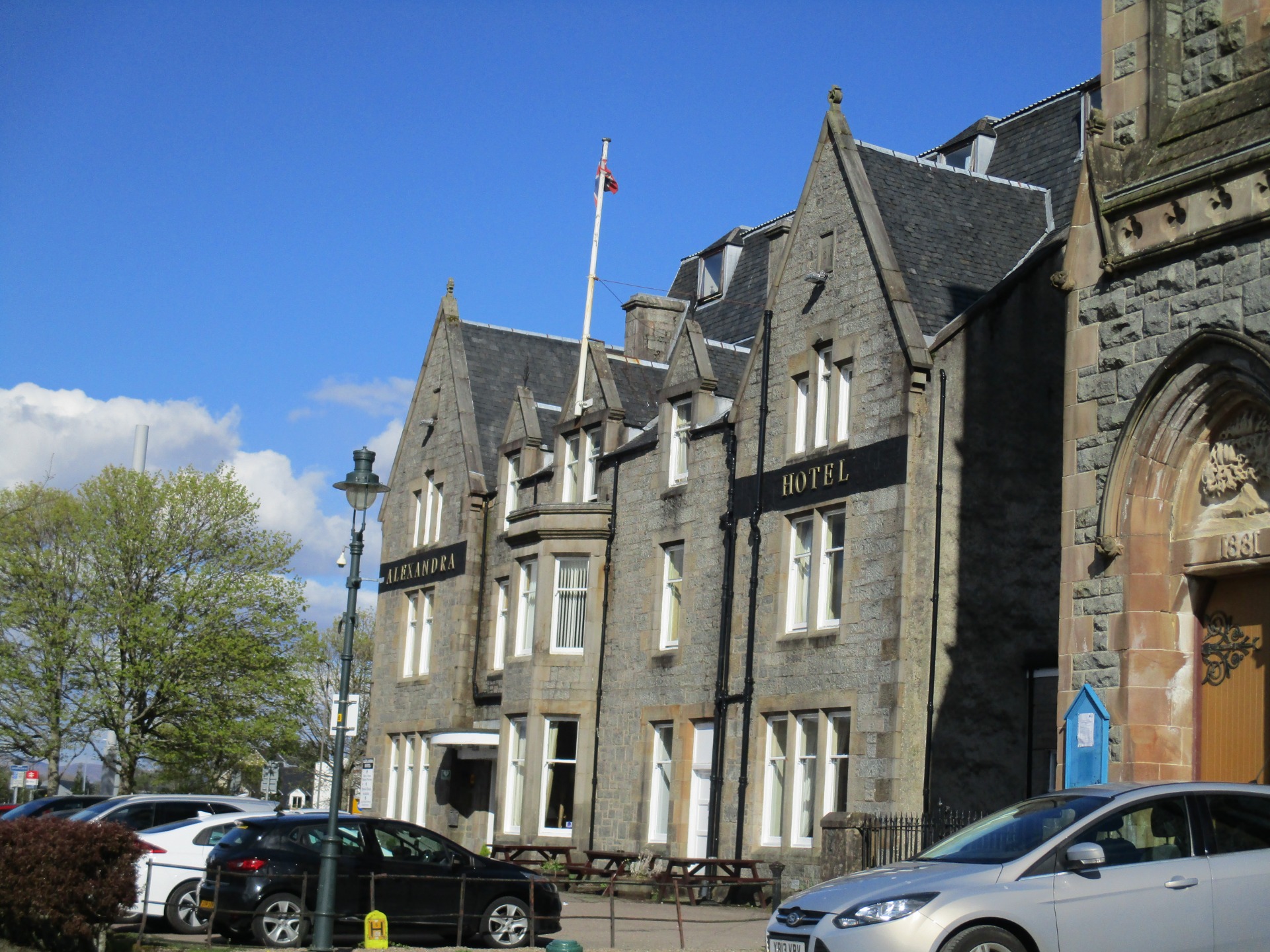 Našli jsme náš penzion a posadili se do parku před ním, protože nové hosty přijímají od tří. Park je moc hezký, udržovaný a přímo na břehu Loch Linnhe.