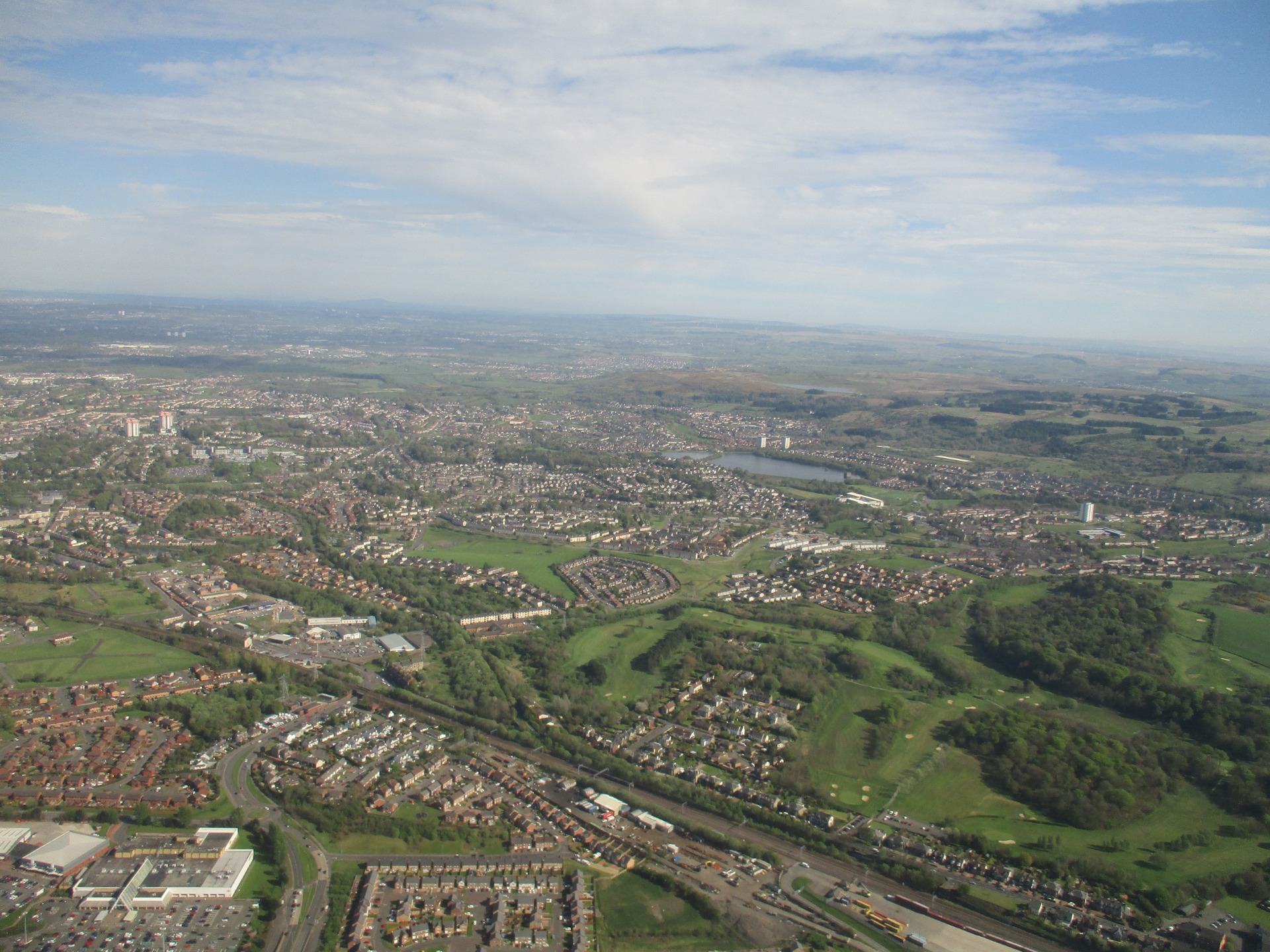 připadali, jako bychom ani nebyli ve Skotsku. Krajina v okolí Glasgow,